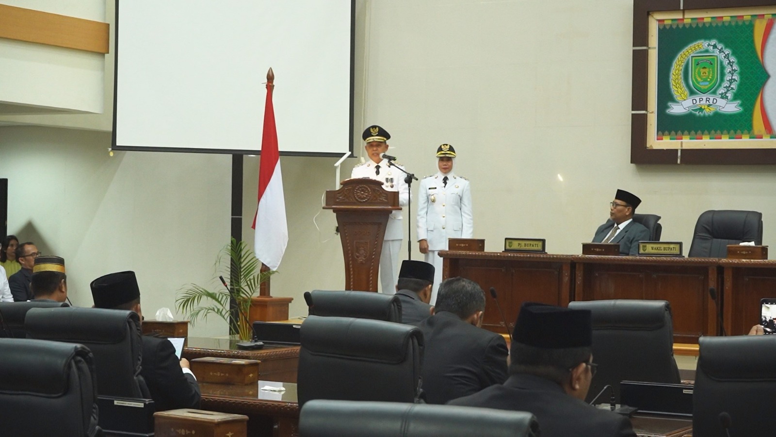 ANDALAN.CO, TEMBILAHAN - Dewan Perwakilan Rakyat Daerah (DPRD) Kabupaten Indragiri Hilir menggelar Rapat Paripurna ke-7 dalam rangka serah terima jabatan Bupati dan Wakil Bupati Indragiri Hilir masa jabatan 2025-2030. Acara ini berlangsung di Ruang Rapat Paripurna DPRD, Gedung DPRD Inhil, Jalan Soebrantas, Tembilahan.