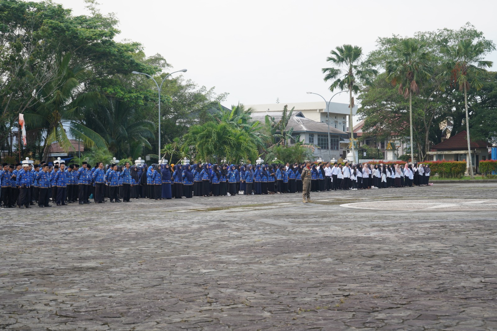 ANDALAN.CO, INHIL - Wakil Bupati (Wabup) Indragiri Hilir (Inhil) Yuliantini, memimpin apel dalam rangka memperingati Hari Otonomi Daerah ke 29 Tahun 2025, yang dilaksanakan di halaman kantor Bupati Inhil, Jumat (25/04/25).