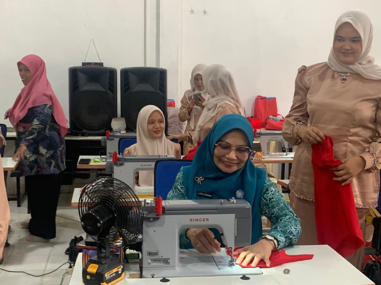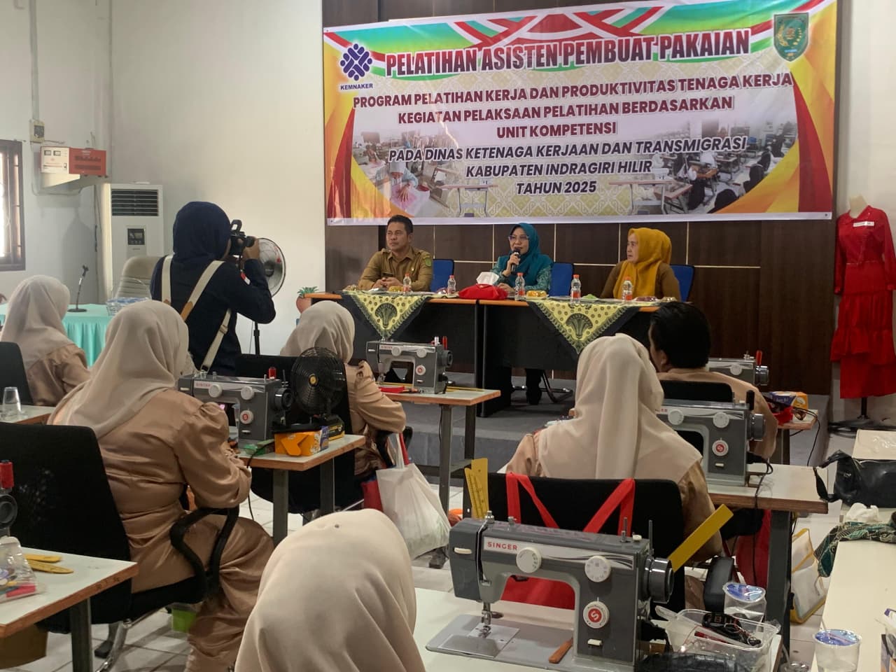 ANDALAN.CO - Ketua TP PKK Kabupaten Indragiri Hilir, Katerina Susanti Herman, melakukan peninjauan kegiatan Pelatihan Asisten Pembuatan Pakaian yang merupakan bagian dari Program Pelatihan Kerja dan Produktivitas Tenaga Kerja pada Dinas Ketenagakerjaan dan Transmigrasi (Disnakertrans) Kabupaten Indragiri Hilir.